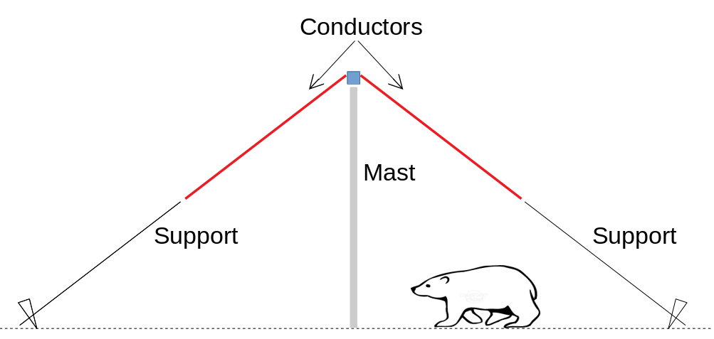 As traditionally formulated, an inverted-V antenna is formed from two conductors about a quarter-wavelength long, connected to a central junction, and either pegged out or fastened to nearby supports.
