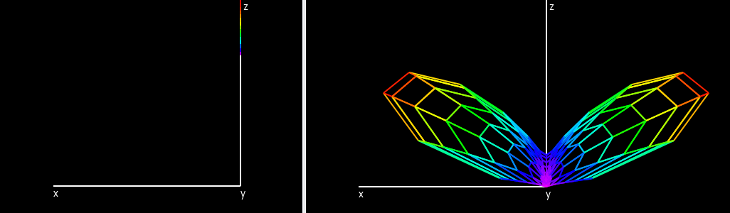 For comparison, figure 3 shows the pattern for a 5m/3m antenna. The angle between the conductors is somewhat larger than for the 10m/7m -- about 133 degrees, compared to about 109 degrees. So its layout is closer to that of a simple dipole.