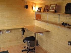Although you won't save much money, by building a shed yourself, building a garden office is a rather different proposition. Commercial garden offices are designed for all-year-round occupancy, which means they need a high standard of weatherproofing. They include double-skinned walls with insulation, and are designed with close attention to waterproofing and damp penetration (of which, more later). They have double-glazed windows and full-sized, glazed doors. Because an office may house expensive equipment (computers, etc.) security is an issue. In addition, unlike a shed, a garden office needs to have an inviting interior -- no rough-sawn timbers or chipboard floors. After all, if I was going to work in my garden office, it needed to be like a home.