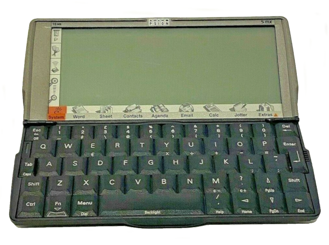 If I was not the first Psion 5 MX owner in the UK, I'm sure I was one of the first. I recall riding my motorcycle sixty-odd miles around the M25 in a blizzard of horizontal rain to buy it. This was in the summer of 1999. I'd heard a rumour that a shipment from Psion had arrived, containing just one MX unit, to a lock-up in Woking. To raise the rather considerable sum of money to buy it, I'd recently sold my Psion 3 -- at my own wedding, no less.
