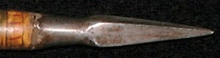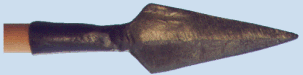 A. In most parts of the world, the earliest arrows for military and hunting use had broadhead points (that is, shaped like a short, flat, knife blade), made from stone, copper, or iron. Broadheads have a cutting action, and are very effective against flesh. However, they are of no use against armour or chain mail, because the impact force is spread over too wide an area. Consequently, in Europe during the 15th century, attention focused on short, thin, points. A particular example was the `bodkin' point used by the English forces at Agincourt. This was a needle-like point an inch or two in length. By concentrating the impact force over a small area, the bodkin had great penetrative power, and was effective against armour. It was also effective against chain mail, because the point was thin enough to slip through or between the rings of the mail.