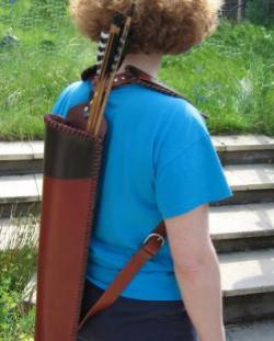 A. In the UK, the quiver -- in the sense of a leather arrow tube -- is a relatively recent innovation. It was uncommon before the Victorian era. During this era, when the bow was used for sport and hunting, leather hip quivers were quite common. In the medieval era, military archers typically carried their arrows in a canvas bag, which they tied around the waist or back. The bag could usually be tied at the top to protect the fletchings. During the battle, it seems that it was common to stick your arrows in the ground by your feet, rather than keep them in a bag/quiver. This had the dual effect of making the arrows easily accessible, and of making the points muddy. While a glancing blow with a muddy arrow point might not eliminate an enemy from the field of battle straight away, in the days before antibiotics it would likely have kept him out of the next battle.