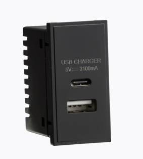 It’s not clear from the photo, but the USB charger module has two shrouded screw terminals on the back, for connecting the live and neutral of the mains supply. It can deliver 15.5W, shared between its USB A and USB C ports. That’s not a huge amount by modern standards; but bear in mind that these devices are designed to be used in an installation with no ventilation. It has to run cool, even at maximum power.
